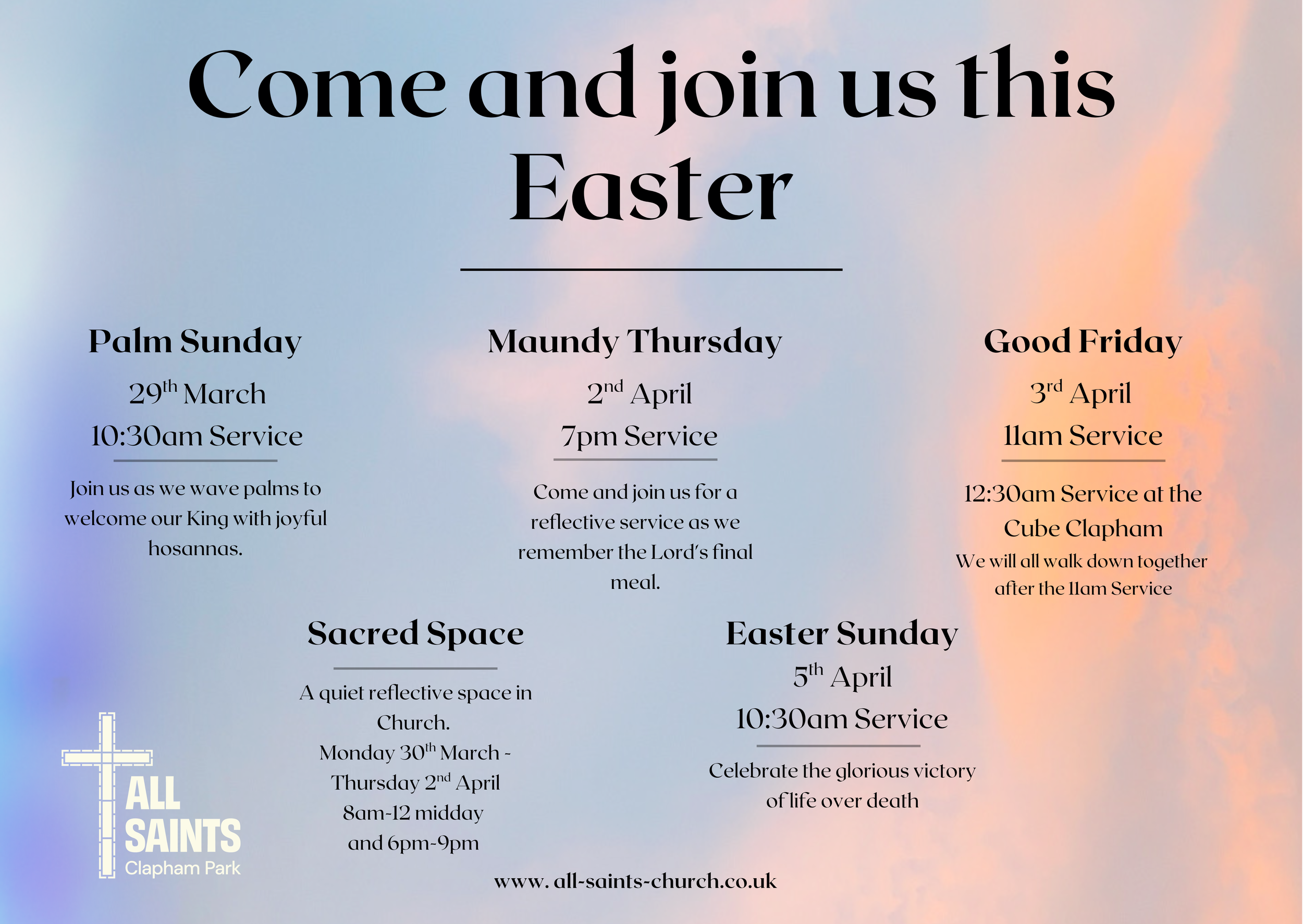 Every fourth month, we gather with three other local parishes in Clapton Park to pray for growth, spiritual awakening, and revival. Please contact us if you'd like the details for the next session.